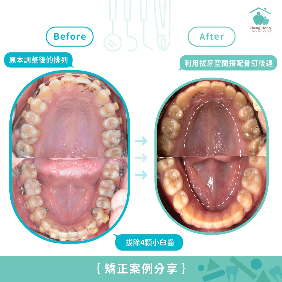 拔除小臼齒獲得空間,讓門牙能大量後退